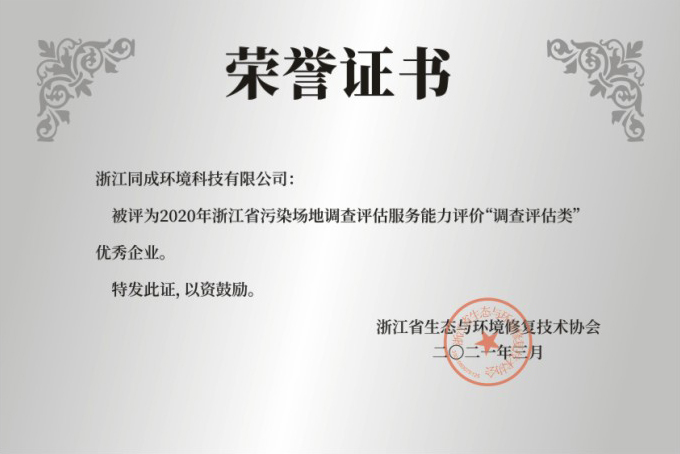 2020年浙江省污染場地調查評估服務能力評價“調查評估類”優秀企業